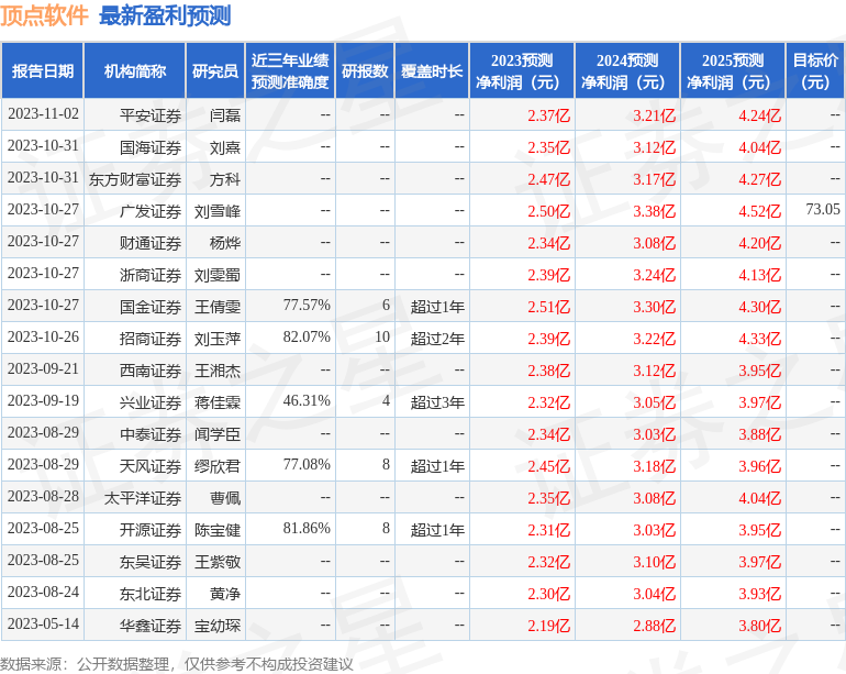 证券之星数据核心依据近三年宣告的研报数据算计,招商证券600999)刘玉萍推敲员团队对该股推敲较为长远,近三年预测正确度均值高达82.07%,其预测2023年度归属净利润为赢余2.39亿,依据现价换算的预测PE为38.57。