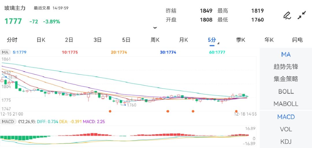 12月18日,邦内期市能化板块涨跌互现。个中玻璃期货盘面趋向下行,截止发稿主力合约大幅下跌4.06%,报1774元。