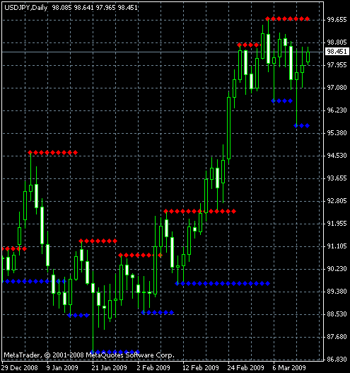 T此图已外明了一共。用蓝点标帜的程度外现维持位,用红点标帜的程度外现阻力位。还要理解即使维持被打破之后也许会更动为阻力,反之亦然。