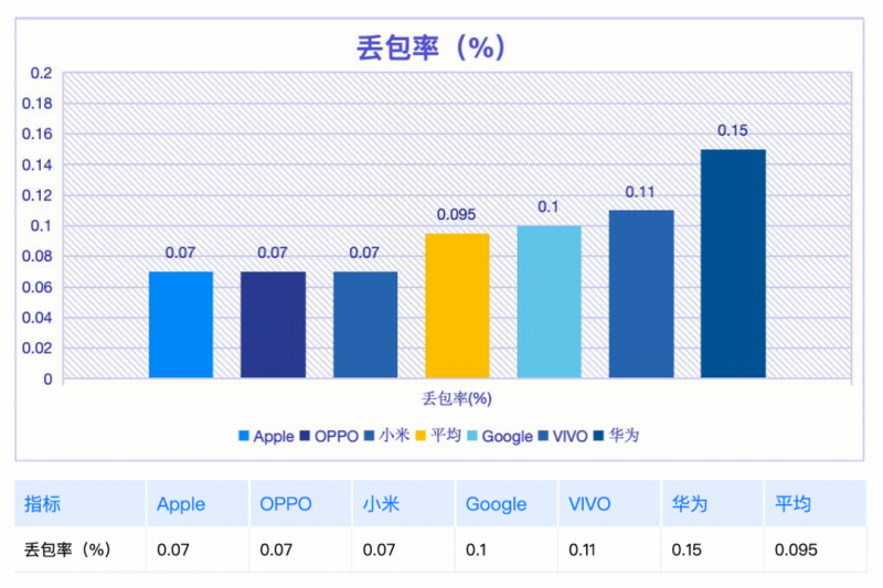 Apple、OPPO、小米的丢包率同为0.07%,远低于1%的危急阈值,证据大都品牌正在根本汇集层已修树起较为巩固的抗作梗机制。