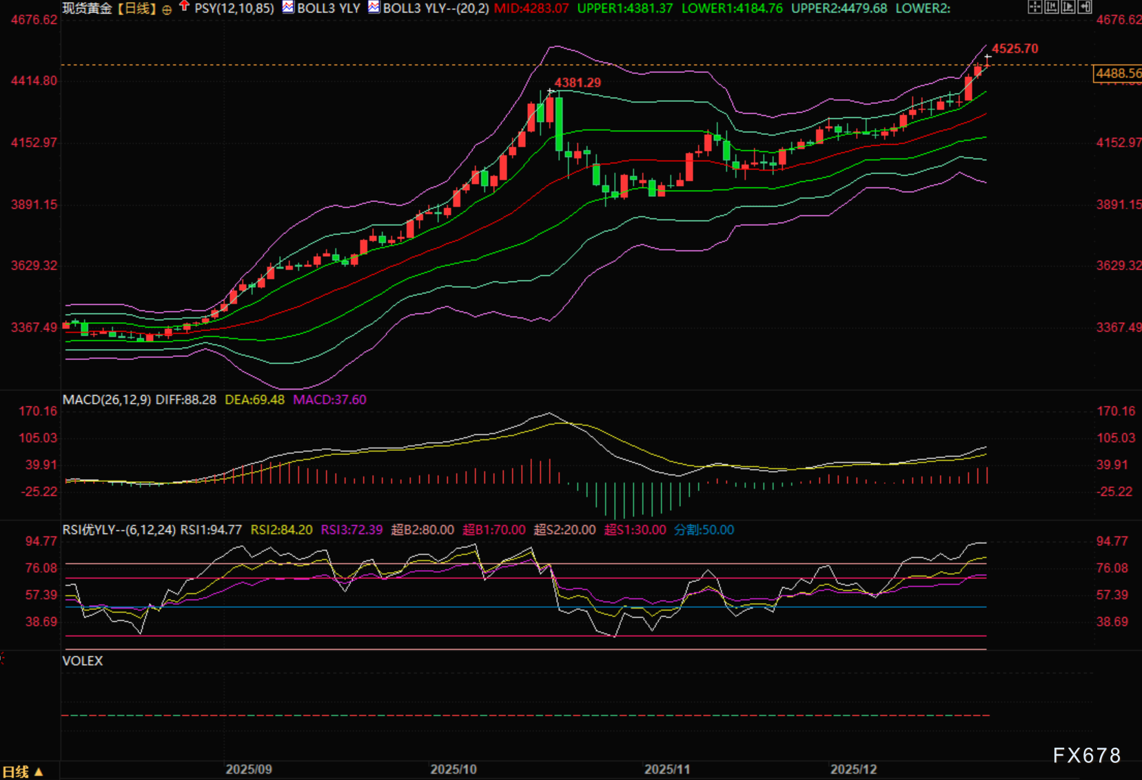 2025年堪称贵金属超等牛市,黄金年内涨幅超69%,如图1,截至今日12月24日早上最高升至4525美元/盎司史籍高位。