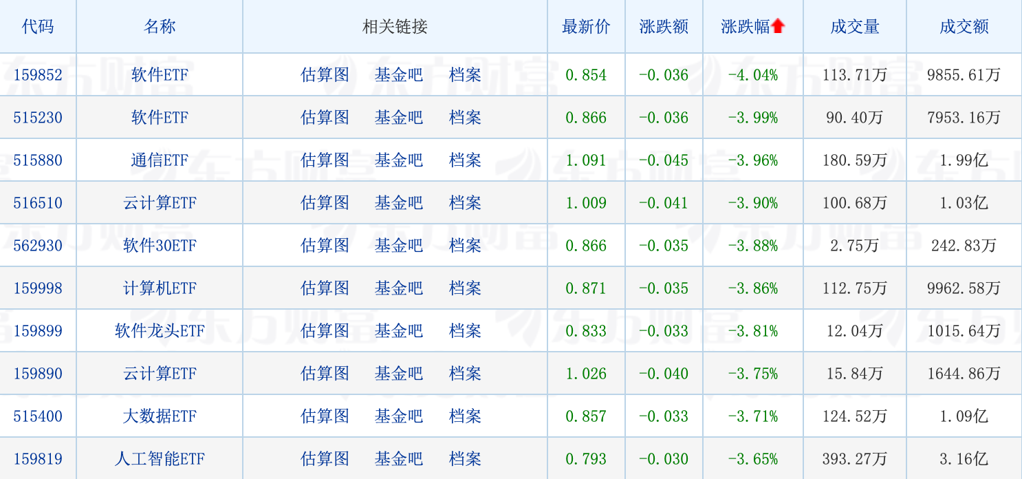 全体来看,信创观念股振动走弱,中邦软件跌停。受此影响,软件、云策动合系ETF全线%。