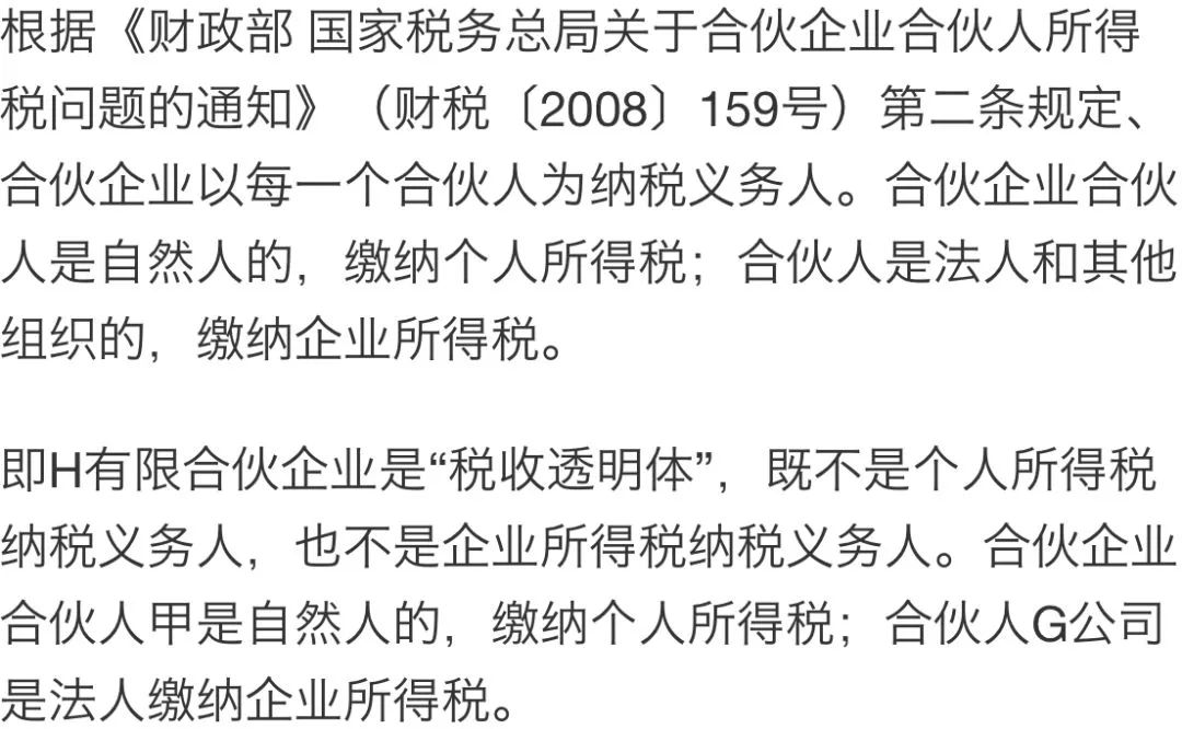 按照《中华百姓共和邦企业所得税法》(中华百姓共和邦主席令第63号)第二十六条轨则,切合条目的住民企业之间的股息、盈利等权柄性投资收益为免税收入。对付G公司投资人,由于它不是直接投资给住民企业,而是通过H合股企业间接投资给住民企业项目公司的,税局以为中央有个H合股企业,因而不属于免税收入,故G公司还要再缴25%企业所得税。注:如许实在缴了三道税,项目公司X1缴了一道企业所得税,G公司又缴一道企业所得税,G公司股东假使片面,还要再缴一道片面所得税,有限合股企业举动税收透后体不缴税。反复征税分歧理,但税法轨则如许。但有些区域有人性化的照料,实务中倡议与税局疏通,看能否将合股企业视为税收透后度体,得回直接投资免税认同。