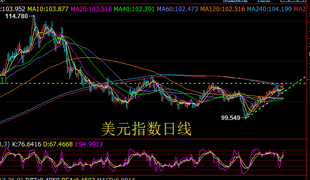 美元指数,盘面来看,美元指数继续回落三个业务日后最终究103闭口止跌回升并冲破近期高点;周线连阳,众头相当强势,但也需提防冲高回落。日线上,继续两天大阳线后如故维持强势;现在美元指数切合咱们预期,接下来不断闭切众头向上。