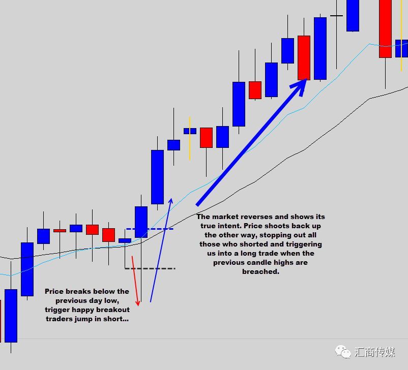 上图中,本来的看跌冲破趋向完整消亡,商场出手往反倾向变革。为什么会浮现这种假冲破呢?由于假冲破触发了止损,使得商场缺乏反向变革的阻力,我将这看作是一种“余波效应”。