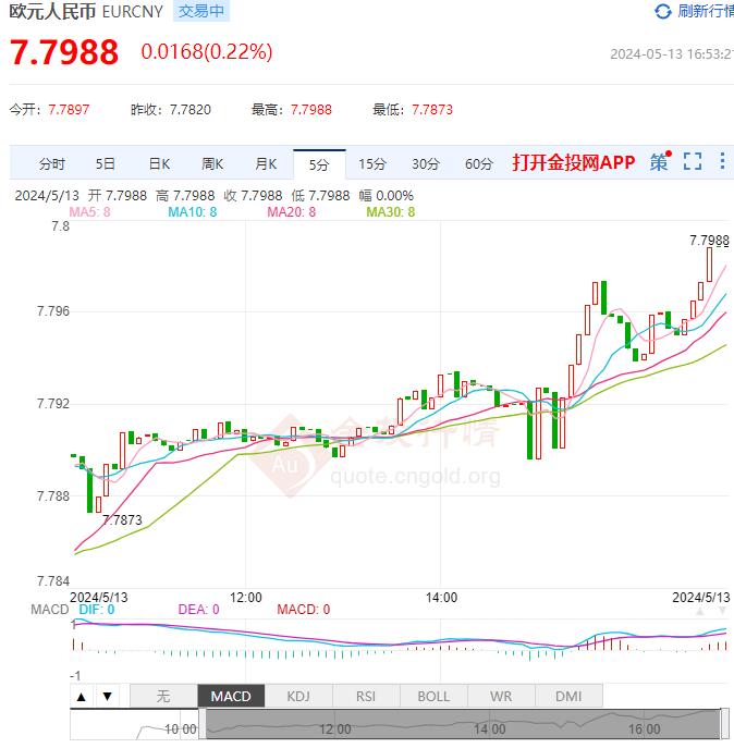 最高价7.7988—新浪外汇实时行情5月13日,欧元/国民币中心价报7.6829,较前一往还日调贬12个基点。前一往还日,欧元/国民币中心价报7.6817。