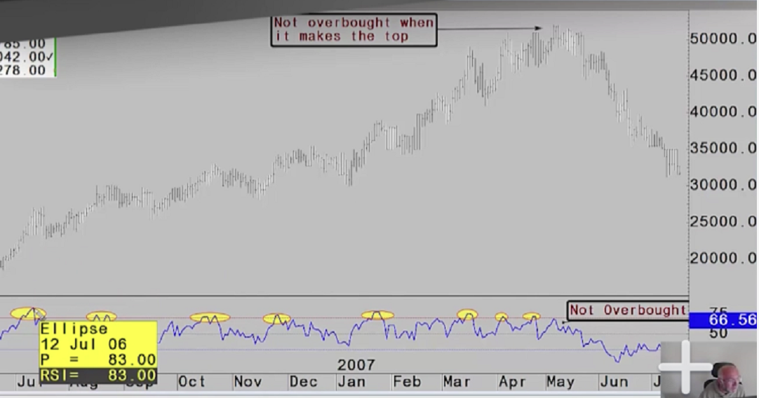 Shaun就指出,思用超买来追赶趋向是没用的,由于RSI会不绝告诉你,现正在超买,尽速离场。