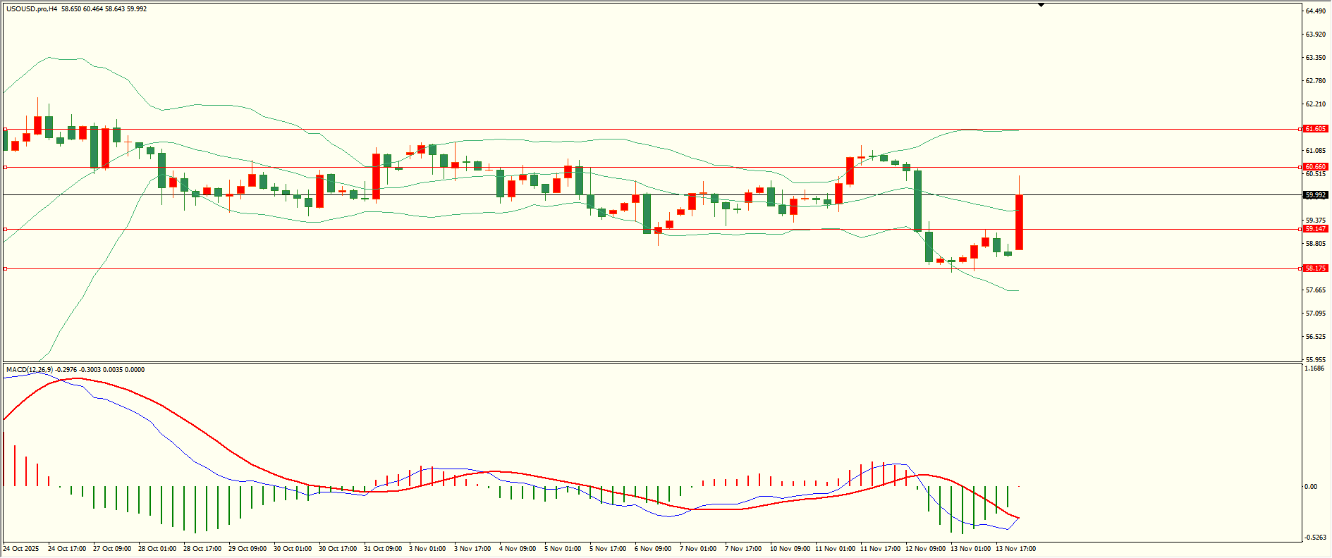 原油昨日反弹至第一阻力承压下行,但下方空间受限,日线报收小阳线,下方支持保留,同时上方面对众重阻力,短线的众空篡夺希望一连,从4H来看,布林中轨略有拐头,MACD零轴下方运转,日内下方首要支持59.15,第二支持58.20,上方阻力60.65,61.60,保留正在第一支持上方短线希望测试第一阻力。