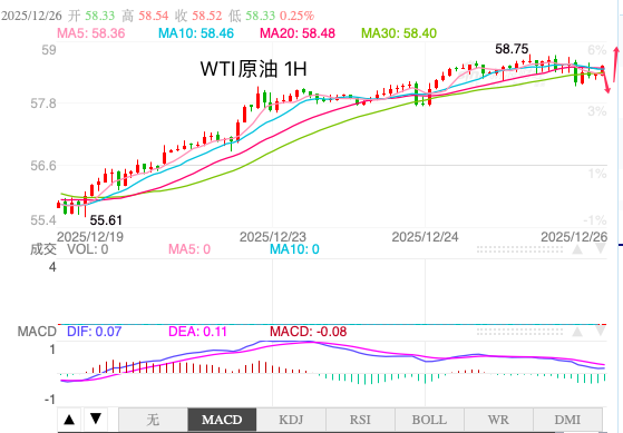 原油短线H)走势高位颠簸,假期交投平淡,短线客观趋向对象颠簸形式。MACD目标正在零轴上方张口下降,众头动能削弱。早盘油价正在58.50相近次要颠簸,估计日内原油仍支持高位颠簸节律为主。