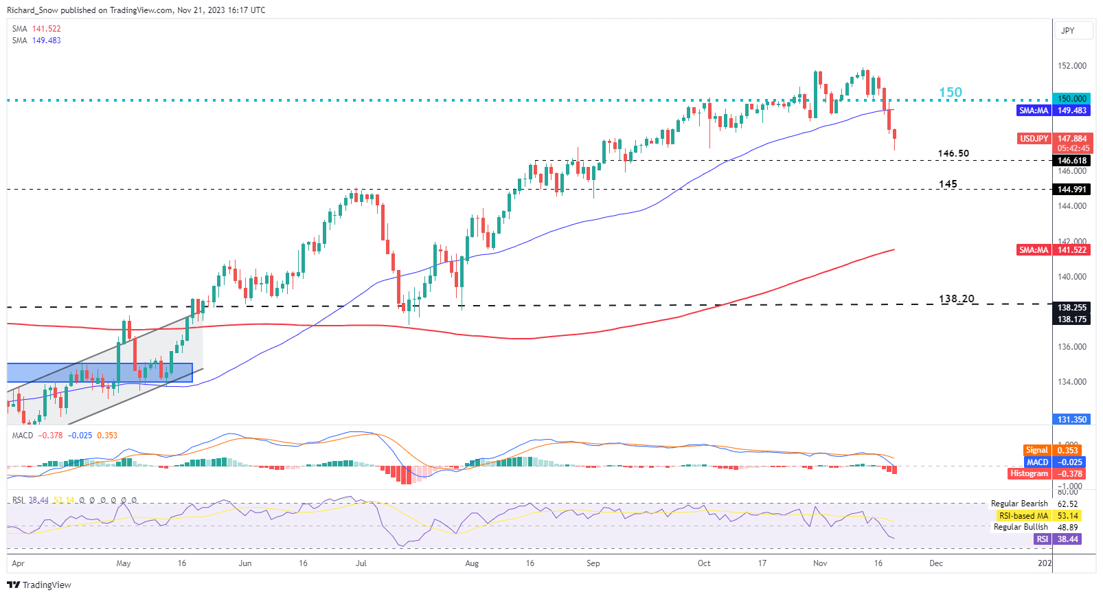 美元/日元正在 146.50 找到支持,随后是 145.00。倘若咱们要看到回调,50 SMA 现正在会酿成潜正在的动态阻力,但看跌走势尚未打破 RSI 的超卖条目,以是正在过热之前大概仍有更众运转空间。