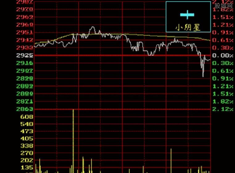 小阴星的分时走势图与小阳星形似,只是收盘价值略低于开盘价值。外白行情疲软,发扬偏向不明。